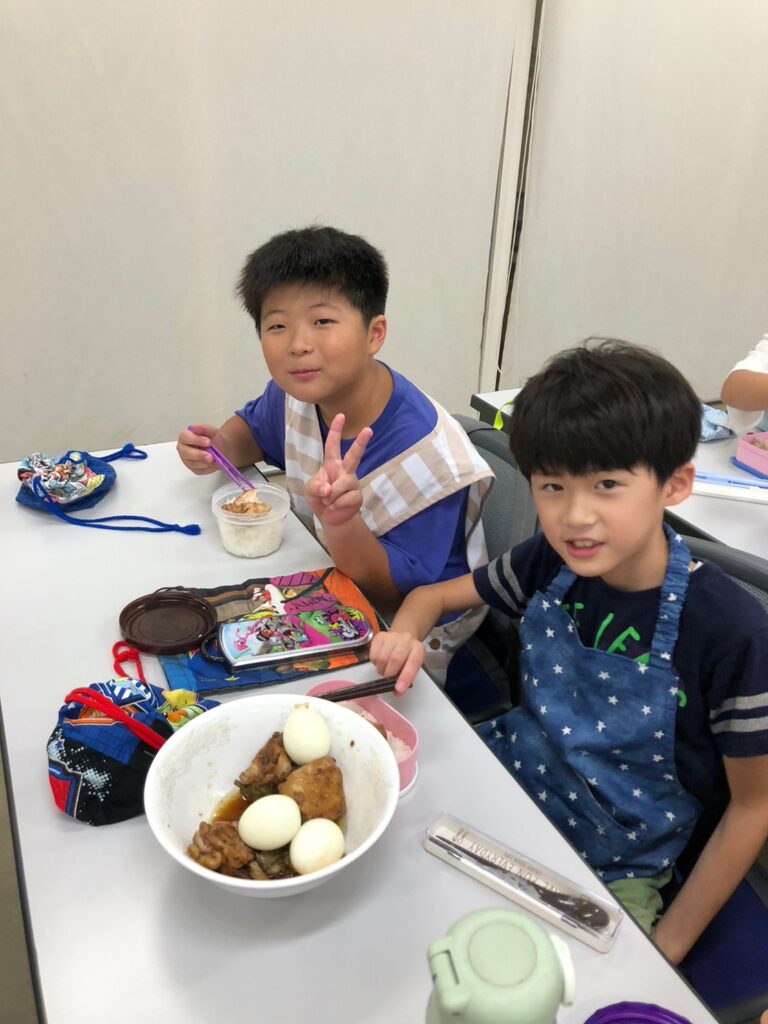 Anneはもちろん英語で説明するのですが「わからない」と言った子は一人もいなく、あいまいに理解した子がいれば、高学年の子たちが低学年の子たちをヘルプしてくれて、スムーズに料理の過程も進みました。